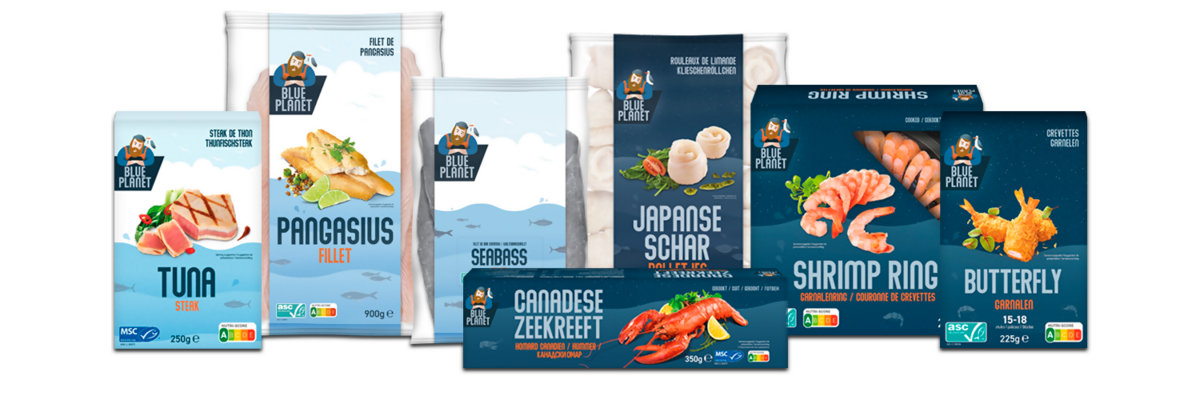 In 2022 we introduced our Blue Planet frozen fish line, tailored specifically for the retail market. Perfect for supermarkets looking for in-and-out products for the summer or Christmas period. The new look has 2 packaging styles: light blue for essential range and dark blue for our premium selections.
