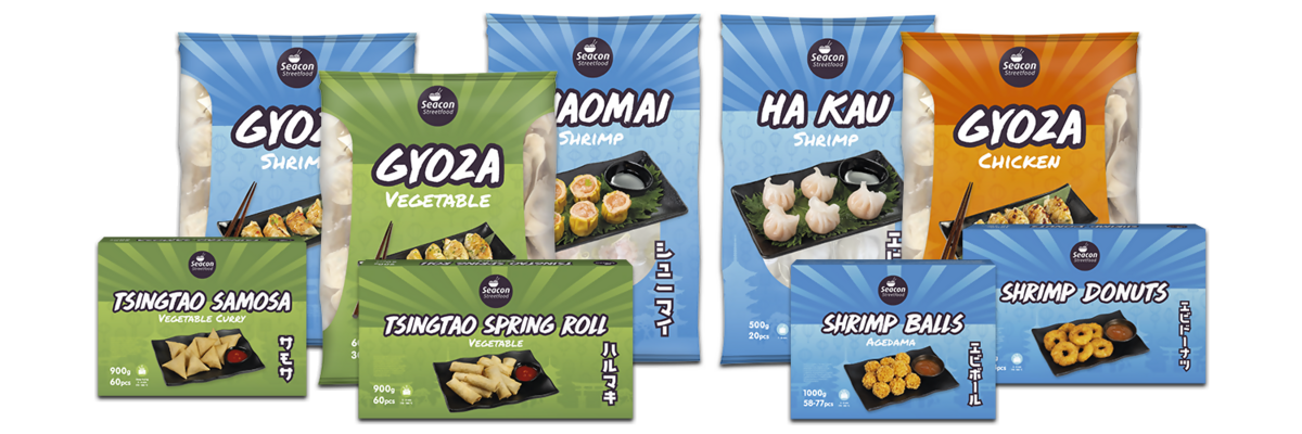 With Seacon Streetfood, we bring the best of Asian street food to Europe! Our range includes gyoza (chicken, shrimp, and vegetable), Shrimp Hakau, Shrimp Shaomai, Curry Samosa and Spring Rolls.